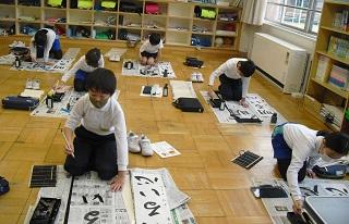 6年生の書き初めは「将来の夢」です。