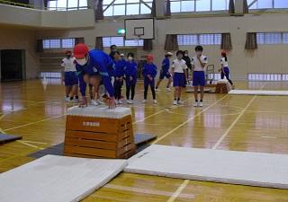 6年生の体育。跳び箱をしていました。