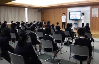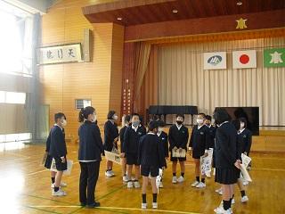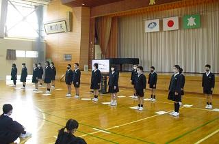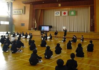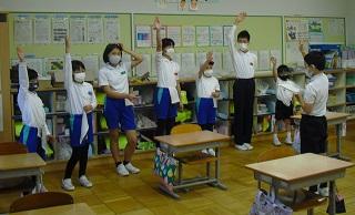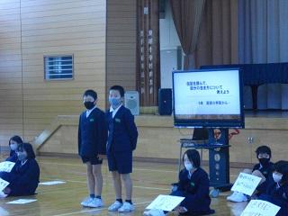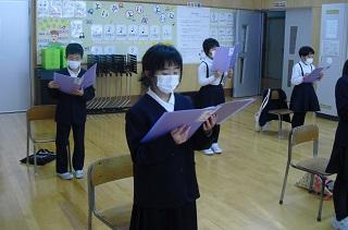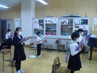 今月の生活目標「思いやりの気持ちを持って行動しよう」にちなんだ今月の歌「今日から明日へ」を歌っています。