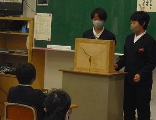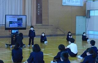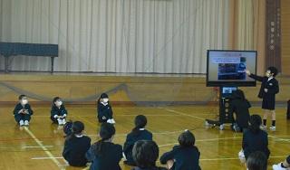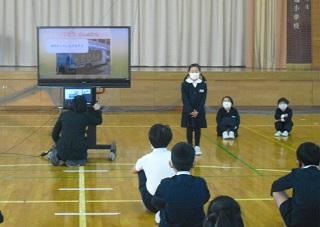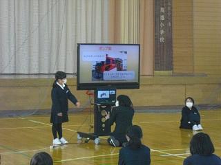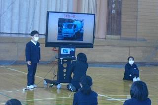 2021年12月3日 15時34分1年生が鳥越っ子集会で、国語科の「自動車くらべ」の単元で、自分が選んだ自動車の仕事やそれの仕事をするためにどんなしくみがあるのかを発表しました。原稿も見ずに、ジェスチャーも付けて、大きな声で堂々と発表していました。たくさん練習したことがうかがわれました。みんな、よく頑張りました。