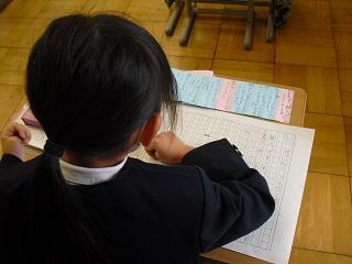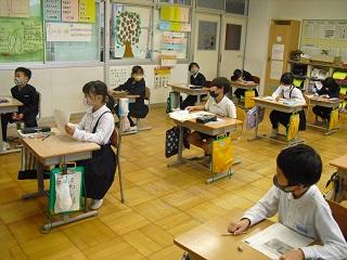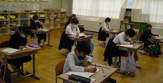 6年生は国語のテストを受けていました。みんな真剣です。