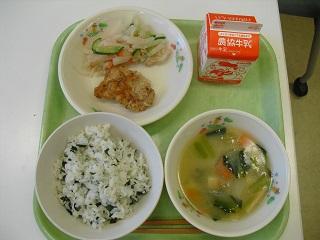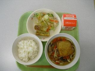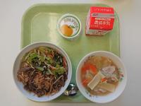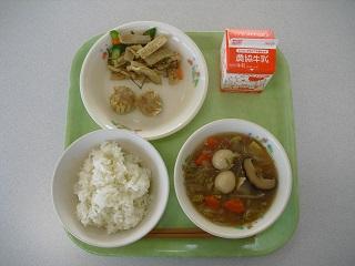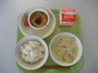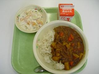 今日の給食は、きのこカレーとブルーベリーヨーグルトでした。カレーには、しめじ、エリンギ、マッシュルームなど、いろいろなきのこが入っていて、とてもおいしかったです。