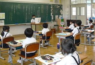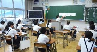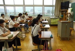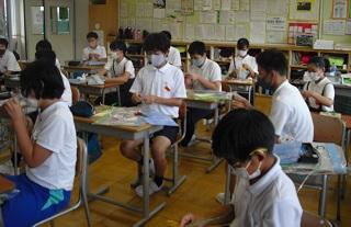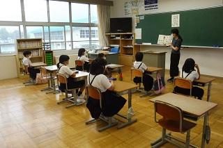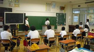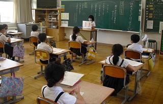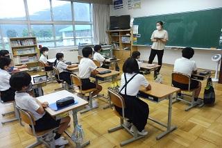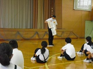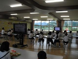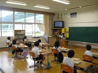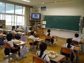 今日の給食に時間に、栄養教諭が夏の食生活について、話をしました。みんな真剣に聴いていました。
