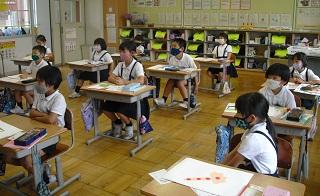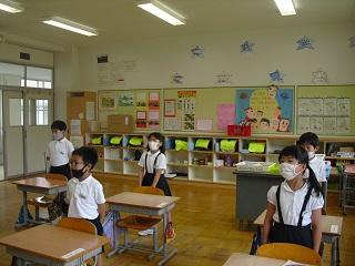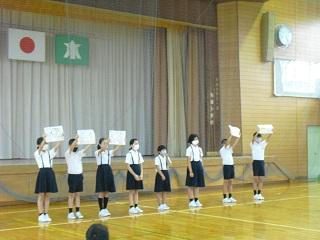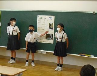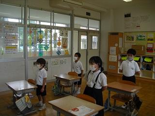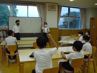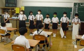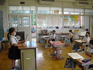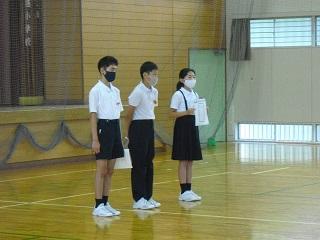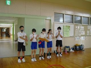 生活委員会。7月の生活目標「暑さに負けず学習に集中しよう」の達成に向けて、体調管理などの呼びかけをしていくことを伝えました。