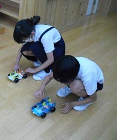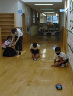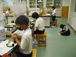 4年生の理科。自分で回路を組み立てて、車が走るようにしたり、電気がつくようにしたりしていました。