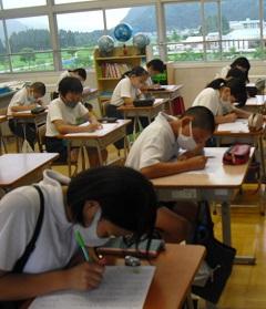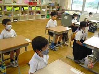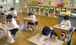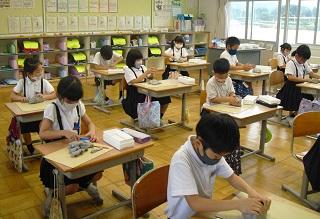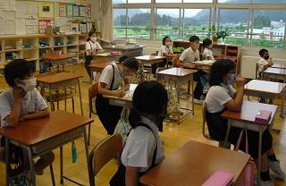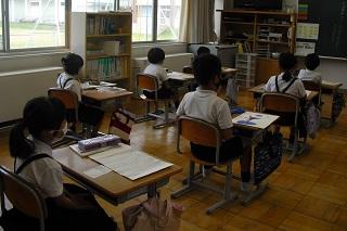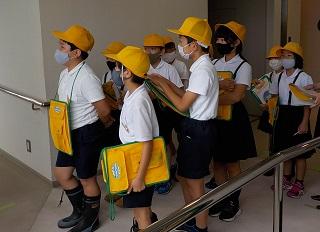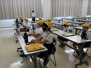 今日は、県民一斉防災訓練(シェイクアウトいしかわ)に参加しました。午前11時に放送の指示に従って、しゃがむ、隠れる、じっとするの安全行動をしっかりとることができました。また、夏休み前の地区別安全指導・集団下校訓練も行いました。地区別に危険なところや登下校のマナーについて確認した後、体育館で安全指導を行いました。今日は下校バスに先生も乗って、集団下校の訓練もしました。