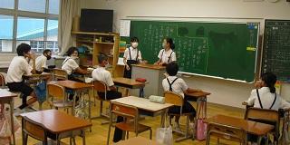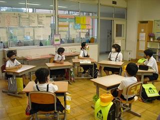 1年生の音楽。校歌や「うみ」を歌っていました。校歌を聞かせてくれました。大きな声で、難しい言葉もしっかりと歌っていて感心しました。