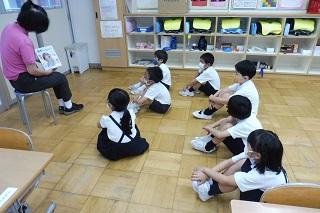 今日の朝学習の時間は「お話キャラバン隊」でした。子どもたちが楽しみにしている時間です。