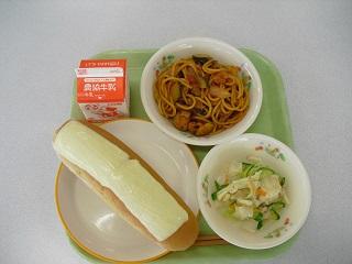 今日のメニューは、チーズ蒸しパン、ペスカトーレ、ツナトッピングサラダでした。ペスカトーレには、あさりやいか、夏野菜のズッキーニ、なすなどがたっぷり入っていて、とてもおいしかったです。