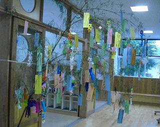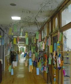 今日は七夕です。竹にはたくさんの願い事や飾りがついています。願い事が叶いますように・・・。残念ですが、今日は天の川は見られない様子ですね。