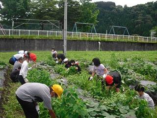 雨で延期となっていた、たて割り活動を今日行いました。心配していた雨もお昼にはあがって、活動することができました。5年生が考えた遊びとさつまいも畑の草むしりを行いました。5年生は、遊びを考えたり、司会をしたりとよく頑張っていました。さつまいもの畑もきれいになりました。