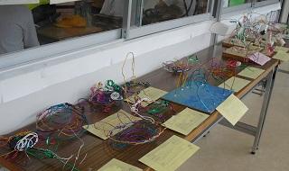 6年生の図工では、色とりどりの針金を使って作品をつくっていました。