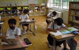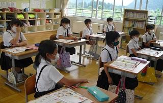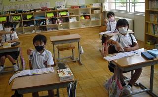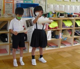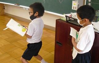1年生の国語。「おおきなかぶ」の授業です。登場人物になりきって音読していました。