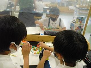 4年生は理科の授業でモーターをより速く回転させるにはどうしたらよいのかを考えていました。