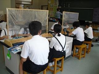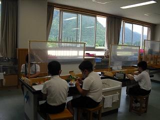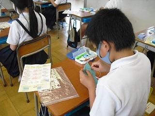 5年生の家庭。小物入れの仕上げです。みんな集中してしました。