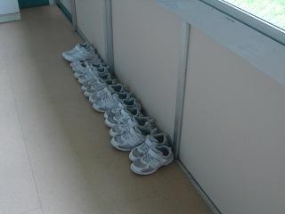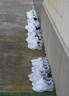 プールに入るにあたって、3年生のズックもきれいに並べられていました。履き物をそろえることも大事にしています。