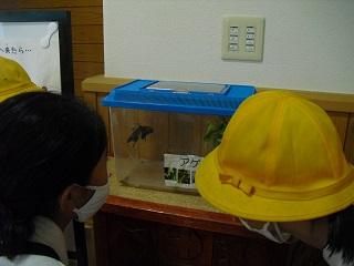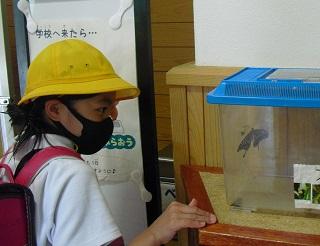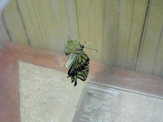 今日のお昼にさなぎからアゲハチョウになりました。ちょうど誕生の様子を見ることができた子どもたちもいました。みんな目を輝かせて見ていました。帰る頃には、はねを広げたり飛んだりしていました。