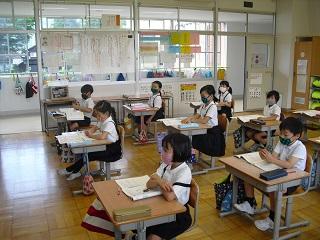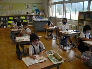 2年生の国語。新出漢字の練習を集中してしていました。姿勢もいいですね。
