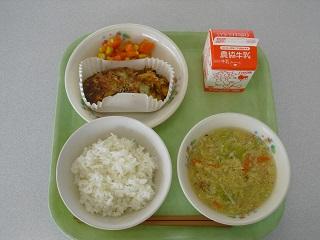 今日の給食は、カレーポテトグラタン、にんじんグラッセ、かきたまスープでした。グラタンのじゃがいももホクホクでとてもおいしかったです。