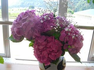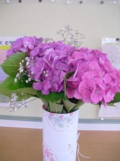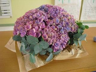 2年生が紫陽花のアレンジメントを届けてくれました。ありがとうございました。