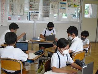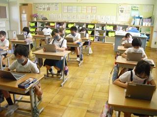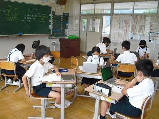 4年生の総合的な学習の時間。福祉について発表する準備をしていました。