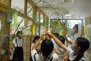 思いを込めて書いた短冊を飾りました。みんなの願いが叶いますように。