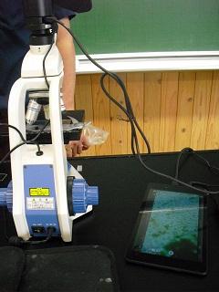 5年生がメダカの赤ちゃんを見せてくれました。分かりづらいですが、小さな赤ちゃんが元気に泳いでいます。
