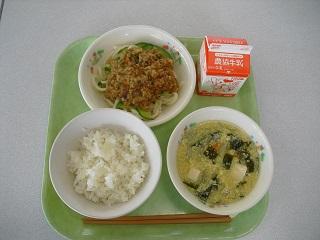 今日の給食は、魚のタルタル焼き、ひじきの炒り煮、なすのみそ汁でした。今日もおいしくいただきました。