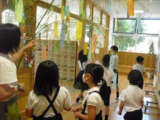 1年生も短冊に願い事を書いてかざりました。折り紙で飾りも作りました。