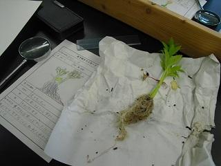 3年生の理科。今日は植物の根の観察をしていました。細かいところまでよく見て、特徴をとらえて上手にかいていました。