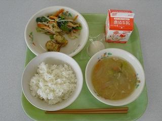 今日は氷室の日です。給食もこの日にちなんで、氷室まんじゅうやちくわが登場しました。無病息災を祈りながら、いただきました。今日のメニューは、ちくわのお好み揚げ、もやしのごま酢和え、具だくさんみそ汁、氷室まんじゅうでした。今日もおいしかったです。