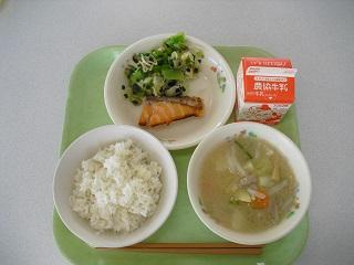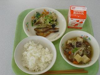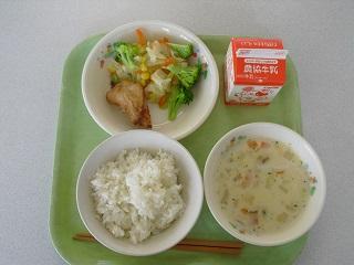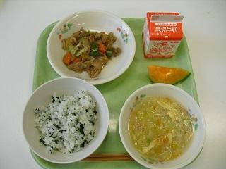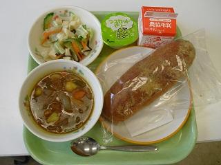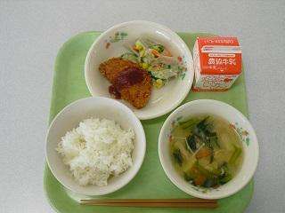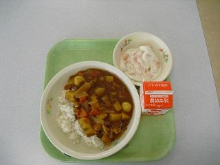 今日の給食は、エッグカレーとフルーツヨーグルトでした。カレーにはうずらのたまごが入っています。今日もおいしかったです。