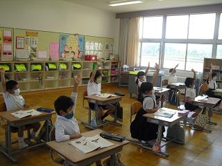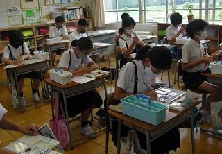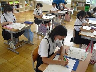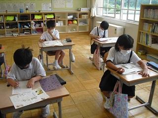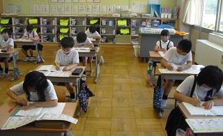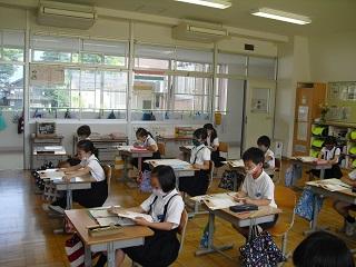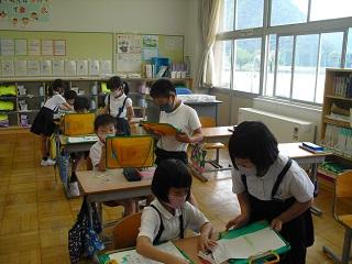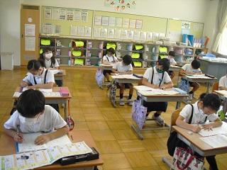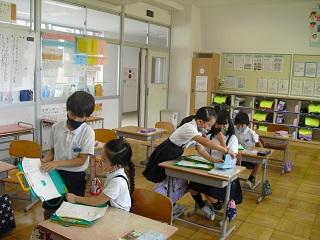 2年生の国語。メモをとって伝えるという学習です。ペアでどうしたらもっと伝わりやすくなるかを考えていました。
