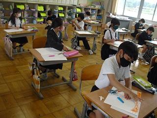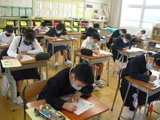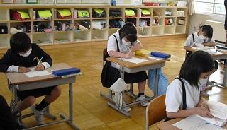 2年生の学活。今日から家庭学習強化週間が始まるにあたって、自分の目標を決めていました。