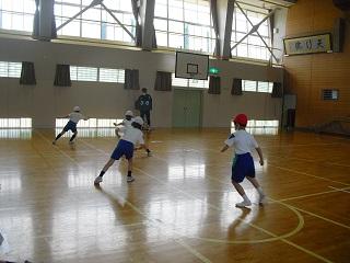 5年生の体育の授業。はじめに持久走を行い、次にソフトボール投げをしていました。