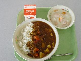 今日の給食は、カレーライス、フルーツミルクゼリーでした。カレーは、こくがあって、とてもおいしかったです。