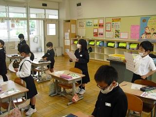 1年生の生活科。先生の所に自己紹介にいく練習をしていました。
