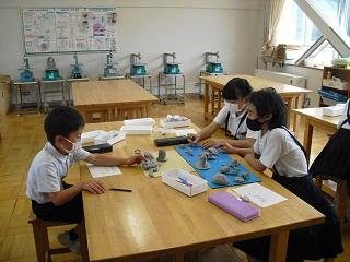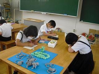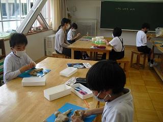 3年生は図工の授業。粘土で動物園や水族館にいる生き物をつくっていました。象、パンダ、羊、猿、タコ、イカなど細かいところまで丁寧につくっていました。