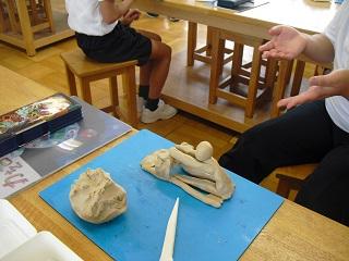 4年生の図工。体力テストを振り返って、運動する自分を粘土で表現していました。