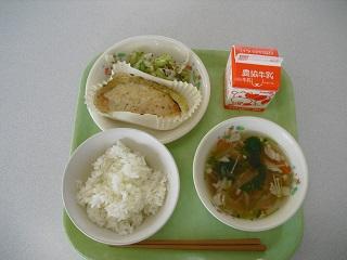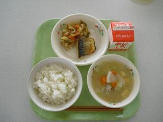 今日の給食は、サバの塩焼き、じゃがいものきんぴら、豚汁でした。今日もおいしくいただきました。