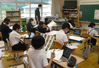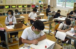 6年生の総合的な学習の時間。校外学習のまとめをしていました。全校集会で発表します。