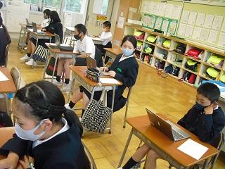 5年生は、家庭にGIGA端末を持ち帰ったときにすることを確認しました。