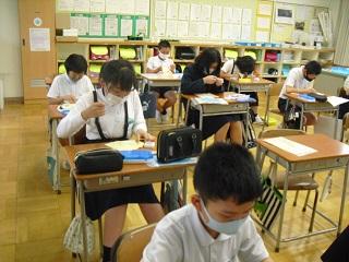 今日の朝学習は「計算チャレンジ」でした。基礎的な力をつけるために、月2回取り組んでいます。1年生も集中して取り組んでいました。