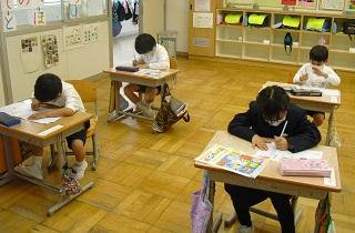 1年生の国語。ひらがなを書く練習をしていました。