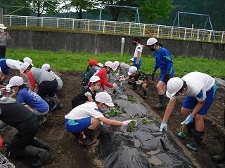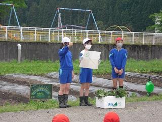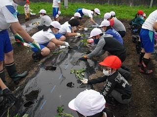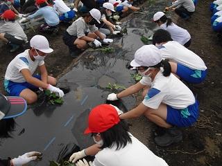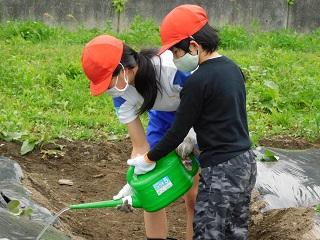 今日の5限目に、たてわり班でさつまいもの苗を植えました。5・6年生の実行委員の皆さんが中心となって、会を進めてくれました。昨年度は臨時休業中だったので先生方で苗を植えましたが、今年は全校のみんなで植えることができました。嬉しいことです。これから各班で責任を持って水やりなどをして、大きなさつまいもが実るようにしましょう。