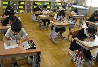 5年生の算数。授業の最後に習ったことを生かして計算問題をしていました。