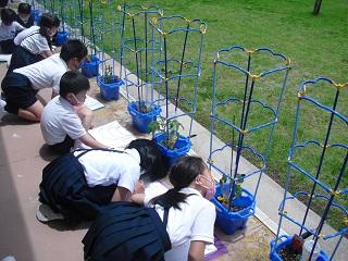 2年生は生活科で育てているミニトマトの観察をしていました。