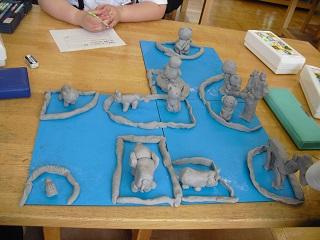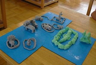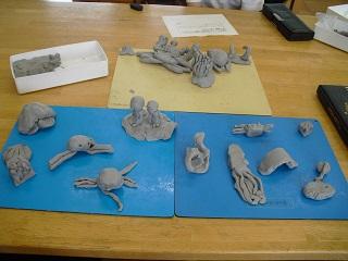 3年生の図工の授業です。粘土で動物園や水族館にいる生き物をつくっていました。