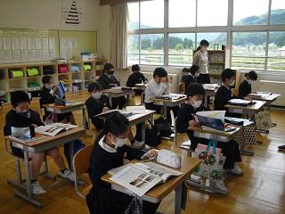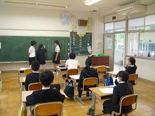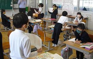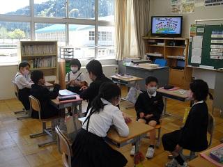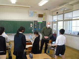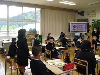 3・4年生の外国語活動、5・6年生の外国語(英語)の授業は担任とALTの先生と一緒に勉強します。英語で挨拶をしたり、自己紹介をしたりしていました。みんな意欲的にコミュニケーションをとっていました。3・4・5年生の授業の様子です。