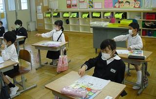 2年生は生活科の授業で、1年生に学校のことを教える準備をしていました。